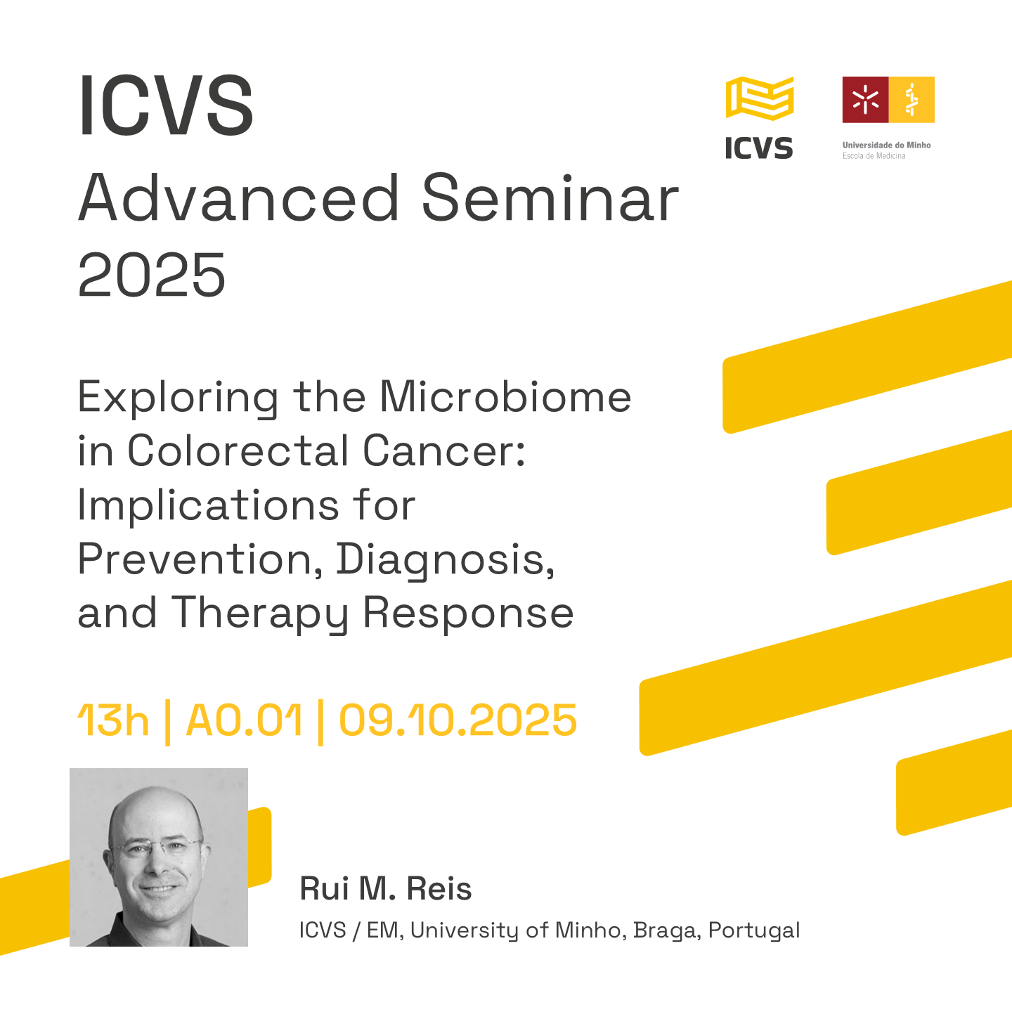 October 9th at 1 pm, don’t miss Rui M. Reis's “Exploring the Microbiome in Colorectal Cancer: Implications for Prevention, Diagnosis, and Therapy Response” at the A0.01 auditorium in UMinho’s School of Medicine. Rui Manuel Reis, PhD, has dedicated nearly three decades to cancer research, primarily focusing on molecular pathology to discover and validate biomarkers. He is an Invited Associate Professor at the School of Medicine, University of Minho, Portugal, and serves as Scientific Director of the Barretos Cancer Hospital, Brazil. In this seminar, he will share his recent research on the interaction between the microbiome and colorectal cancer.